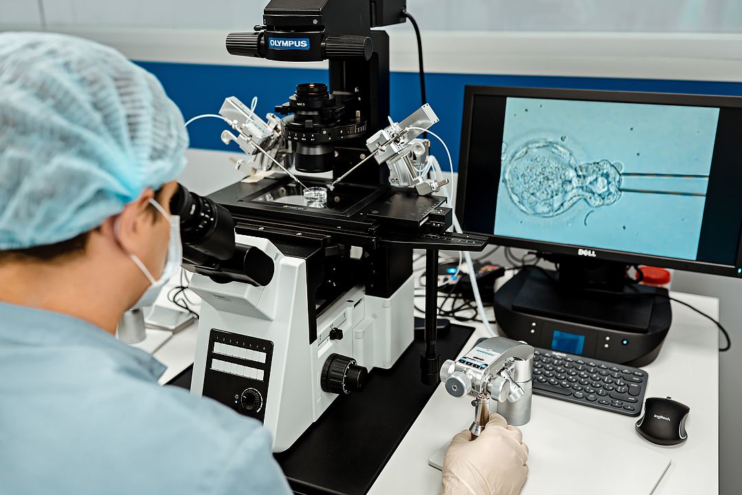 Происходит искусственное оплодотворение ооцита сперматозоидом супруга методом ИКСИ. После культивирования эмбрион переносится в матку.